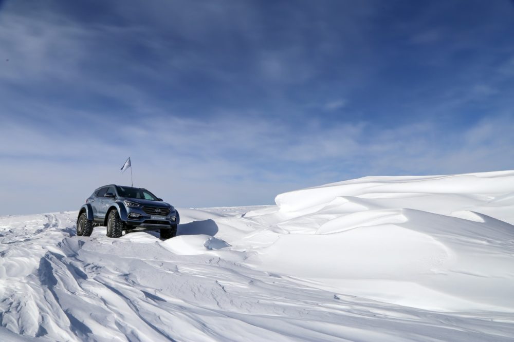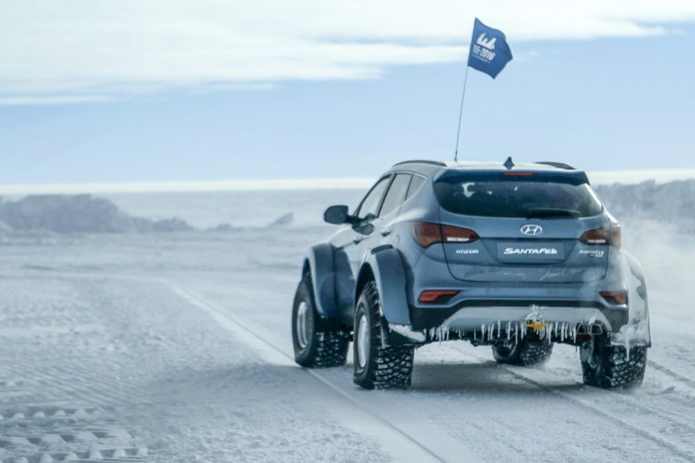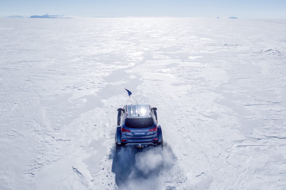 Con i moderni mezzi messi a disposizione da Hyundai, Patrick Bergel in soli trenta giorni ed al volante di una Hyundai Santa Fe di serie ha raggiunto il Polo Sud con una “passeggiatina” di quasi seimila chilometri attraverso il continente più inospitale della Terra.