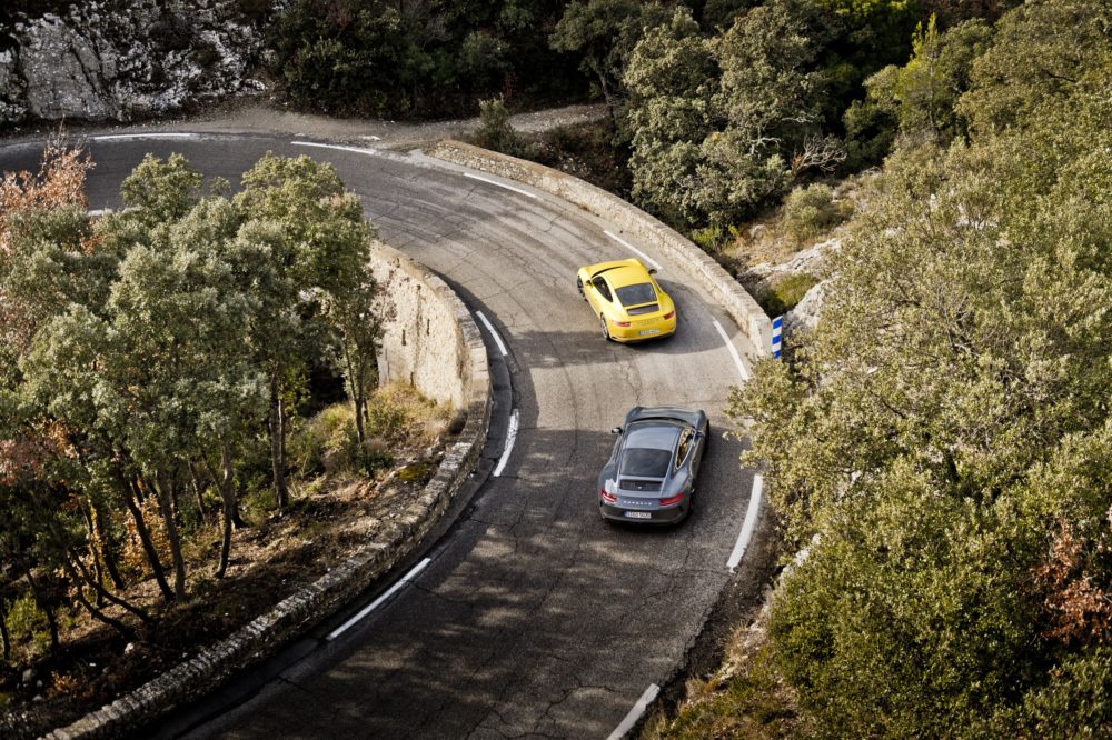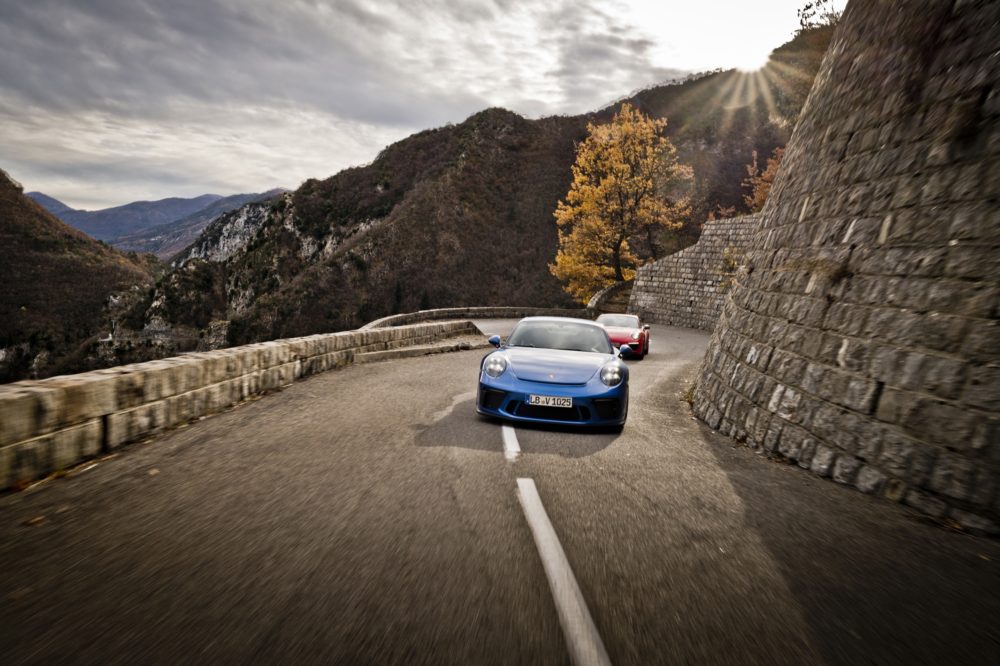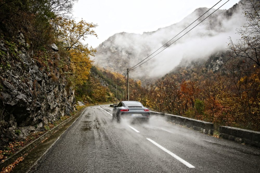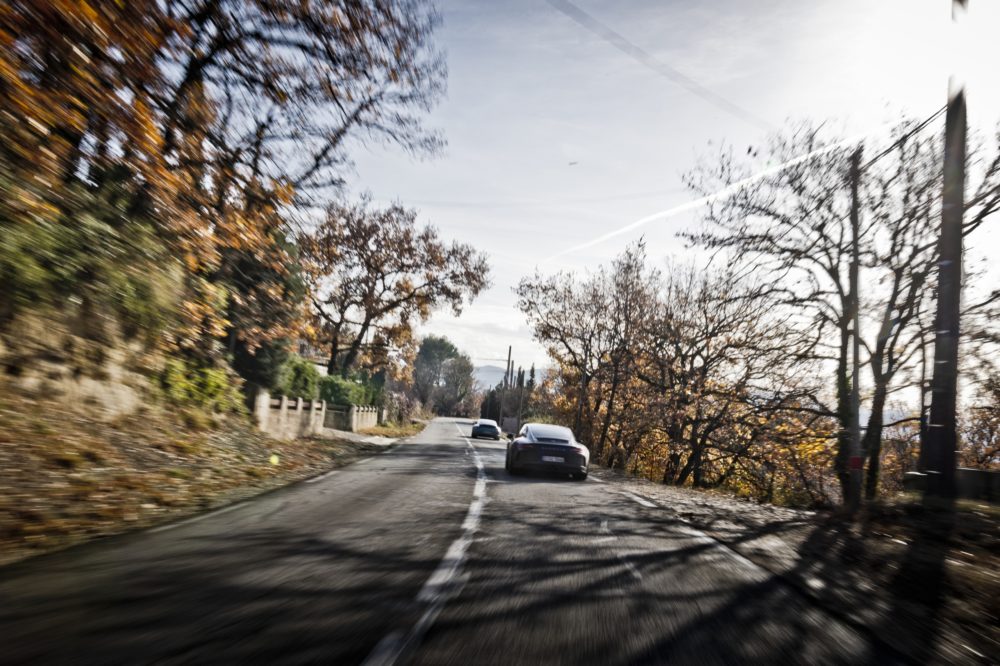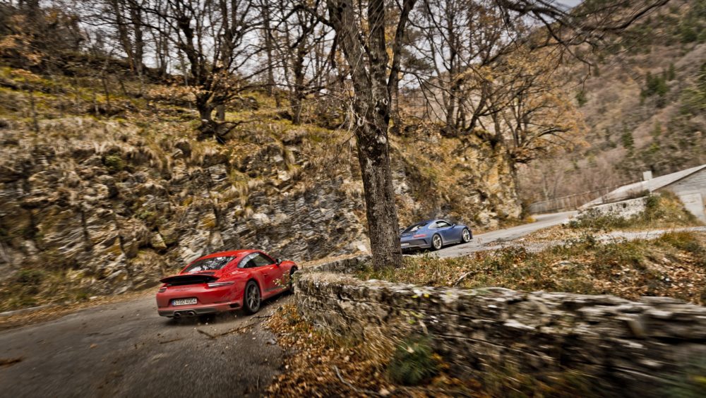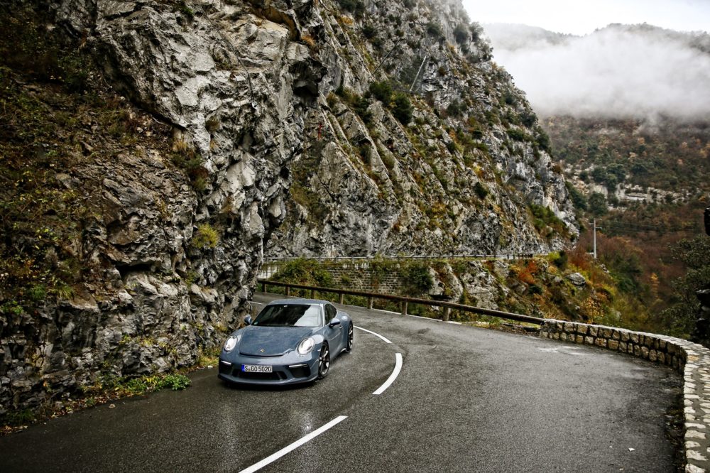 Le strade che le tre Porsche 911 stanno percorrendo sono proprio quelle, curve, tornanti ed allunghi che portano a Montecarlo e scendono verso la ricca cittadina costiera attraversando il valico del Col de Turini.