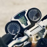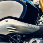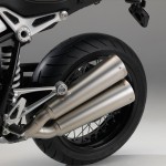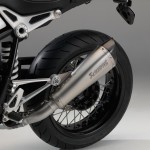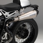 Il concetto di moto Roadster classica/sportiva si riflette nell’impianto di scarico spostato a sinistra con due terminali di scarico sovrapposti. Nell’ambito della gamma di accessori originali BMW Motorrad vengono offerte numerose possibilità di personalizzazione. La nineT ottiene un look particolarmente tecnico grazie all’impianto Akrapović in titanio. Attraverso un tubo di collegamento corto oppure lungo, il terminale di scarico può venire montato basso oppure alto, così da cambiare radicalmente l’immagine e il carattere della nineT.