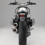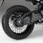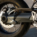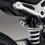 La scatola del differenziale posteriore ha tre punti di attacco per fissare per esempio il portatarga e montare lateralmente la targa oppure il dispositivo d’illuminazione. Inoltre, la configurazione del monobraccio della nineT consente di sostituire la ruota di serie da 17 pollici e larga 5,5 pollici con un esemplare largo 6 pollici e di eseguire l’omologazione separata della moto.